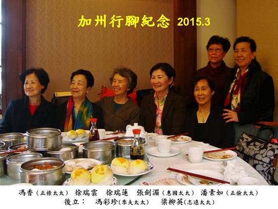 (二) 加州的陽光令人響往,踏入蒙市,一縷金山橙白色的橙花清香迎面撲來,真令人精神一振,很難抑制着將與笛友們聚首興奮的心情,終於在利苑酒樓見到迎面而來的老朋友沈季夫,馮彩珍伉儷,也如願以償的見過有詩詞泰斗的江志遠,有口才滔滔能掀起千層浪的女詩人梁柳英,以及有夷靈茶緣的榮惠國張劍湄伉儷,了卻長久積聚在心頭的愫願,大家談笑風生毫無芥蒂,談起來特別融洽和諧,就好像曾認識久遠了的老朋友一樣。 入夜的三藩市,燈火通明且帶㸃凉意,懷著興奮的心情匆匆從臺北趕赴來敘㑹的黃寶芝,初次見到黃寶芝,她恰似一隻鴨子見到水塘般,高興到濺起一片又一片歡樂的水花!令到雅敘蕩漾着喜悅的漣漪!席間有昔日建國日報總經理黃乃芹伉儷,有龍潮聲邱芳蓮伉儷,沈季夫馮彩珍伉儷,有分隔五十多年的陳國樑葉錦蓮(小草)伉儷,有什麽能在晚年異地相聚來得可貴,「一壼濁酒喜相逢」,天南地北洋洋填滿每個人的心坎⋯⋯⋯⋯。