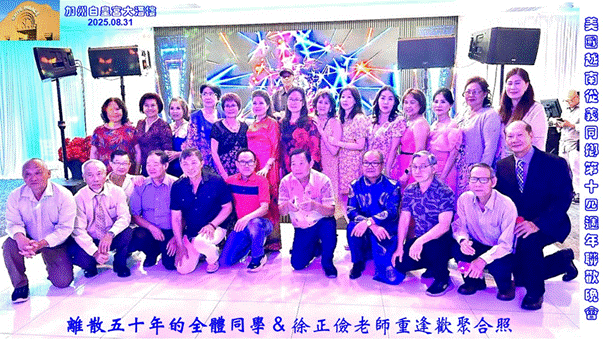 「徐老師,徐老師!」離散五十年,想不到五十年後的今天,還有那麽多的聲音在呼叫著我,聽了特別暖心,很久沒有聽到這串招呼了,真令我感動驚喜!一大群昔日中山中學的學生,如今他們有些已當上爺爺嫲嫲輩,外公外婆輩了,我晚年竟然有師生福份!能獲得他們一蜂窩的迎面撲來爭著和我相擁合照,爭著向我問寒問暖,這是我意想不到天賜的師生情緣,很開心歡慰!如果無緣,我們又怎能有今天歡聚一堂的世紀合照?
