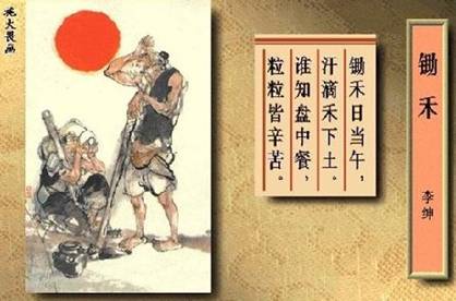 鋤禾日當午,汗滴禾下土。 誰知盤中餐,粒粒皆辛苦。 唐:李紳〈憫農〉