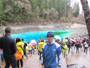 瀲灩彩池分外誘。魚鱗叠水盤珠走。箭竹海濤驚小鲰。馳名琇。黃龍酣飲屠蘇酒。