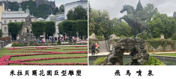 Mirabell的花園,始建於一六○六年,這座巴洛克式花園堪稱為園藝的傑作,園內不但花團錦簇,並有多座噴泉,尤其是園中央的大型噴泉尤為醒目,還有天馬噴泉也非常吸睛。花園裡最令人印象深刻的當然是多處竪立著以希臘神話為主題的雕像,其中包括四座分別代表土、水、空氣和火等四大元素的雕塑作品,可說是唯妙唯肖。從花園的後方有階梯走上去就是侏儒花園,裡面有幾個小矮人塑像,造型有點誇張但也十分可愛。此外,花園裡還有兩座獨角獸的雕塑看來饒有趣味。我覺得這座美麗的花園處處都充滿了浪漫與童話色彩,既是典雅也十分具有趣味性,很適合到來休閒散心。