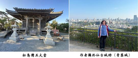 「松島」灣一直享有盛名,被譽為「日本三景」之一,其特色是海灣中有二百多個大大小小的岩礁小島嶼所組成的海上奇岩美景,導遊帶領我們搭乘遊覽船,在海灣中多個岩礁小島嶼之間穿梭,我們在船上一邊聽著陣陣潮風和節拍性的浪聲,一邊欣賞海灣中的奇岩美景,心中有難以言喻的愉悅感。
