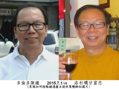 此即前日寄鄧超文先生之全張照片,及多倫多陳鐡先生與洛杉磯甘富忠先生酷似照片來源。