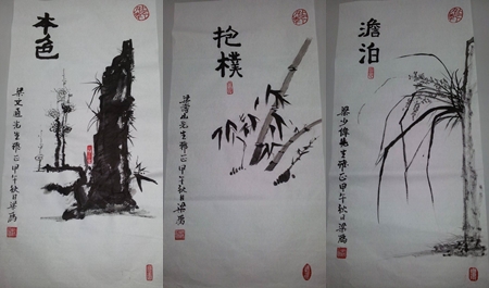 該淡的不淡,該濃的不濃,鄉親不棄,免為其難,匆匆塗鴉,草草收筆,成了我數月不拈筆的敗作。我說不如等我鬆餘時間再慢慢構思,看能不能筆下留情,鄉親說濃淡都是情,只好獻醜了……我就當作這些是檢測我的一面鏡子,給大家貽笑大方了……