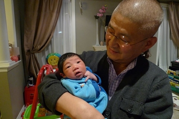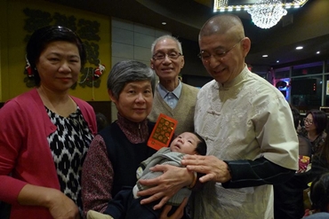 添孫梁父笑顏開 手抱嬰兒晉一杯