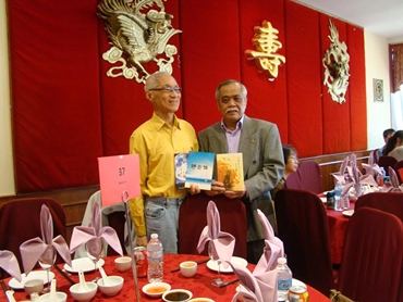 值越棉寮華人協會37週年會慶晚宴,柳青青託黃應泉代轉他與溫哥華嚴志章詩長新書共三本。計開:柳著「一石擊起千重浪」;嚴著「詩雲集」及「古風弄月吟」。