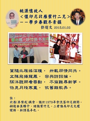 註:北雁(麥偉成)與余,識於1979年余流落印尼期間。嗣後由其轉介,結識葉竹兄。二君俱為印尼文壇健將,新詩高手也。