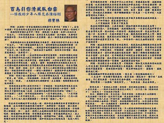 ¦P¾Ç¤è±¡A¤T¦~³£¦P¯Z¦Ó¨ì²{¦bÁÙ¸g±`Ápµ¸ªº¡A¥u¦³¦hÛ¦hªº§õ¶V©ú¡A»P¸t²ü¦èªº¾H®¶Åv¨â¦ì¡C·í¦~§õ¡B¾H¨â¦P¾Ç³£¬O¦í¦b¥¦è°Ï¡A¨C¤Ñ¨B¦æ¤W¾Ç®É¡A¥²¥ý¸g¹L§Ú®a¡A¦³®ÉÁÙ¬ù¦P¤@°_«e©¹¾Ç®Õ¡F¤T¦~¨Ó·«BµL§ï¡A·P±¡¯S§O²`«p¡C§Ú¨Ó¦hÛ¦h¤§«á¡A¤]¬O¥LÌ¥ý¥´Å¥¨ì§Úªº®ø®§¡A¥ý«á¨Ó¹q©Î¨Ó«HÁpµ¸¤Wªº¡F§Ú·|¬Ã±¤³o¥÷Ãø±oªº¤Í½Ë¡C