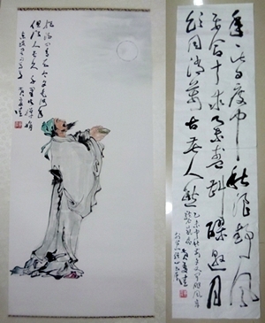 新聞報導,颱風將於中秋節來襲臺灣,上次不久前,颱風襲臺造成人命財產損失無數,乃觸動中秋感懷七絕一首並草書,兼附舊拙臨繪「東坡邀月飲」圖一幅,敬呈風笛眾詩友瀏覽。並頌秋節愉悅。