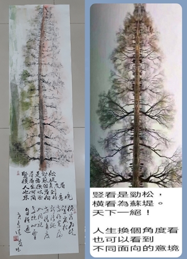 「豎看是勁松,横看為蘇堤,人生換個角度看,也可以看到不同面向的意境。」
