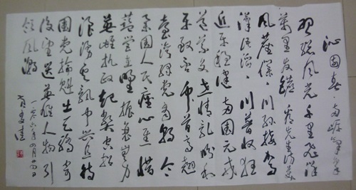 習總風光,千里飛洋,萬里發鑣。看先生訪美,風塵僕僕,川孫接駕,漢語滔滔。川普收狂,近平穩健,兩國元戎道義交。世情亂,盼和平致否?眾首高翹!