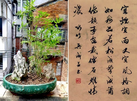 成筆成簫傳韻事 盆栽伴石雅情濃