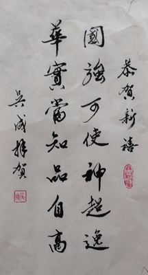 值此新春到來之際,謹奉春聯祝君:萬事勝意!合府吉祥!