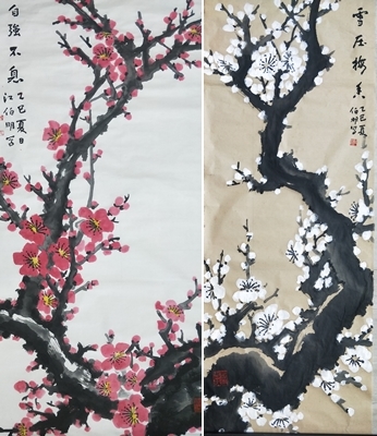 題謝江伯明先生惠賜紅白梅花畫