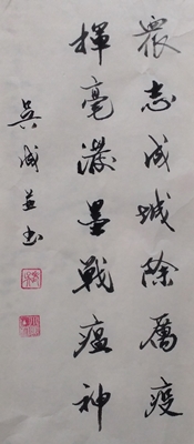 疫厲情憂舉國,賴控防策善,共掃災塵。建專療兩院,集抗疫高人。調醫材、八方捐援,志成城、赴救治爭奔。宜堅信、現時科學,定滅瘟神。