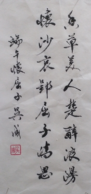 荷香荔熟,仲夏初臨,離騷浪漫,千古無雙。詩人節屆,仰懷正氣情昂。擊水飛舟,弔詩魂、共酹蒲觴。慰忠良。華夏金湯固,國富民強。