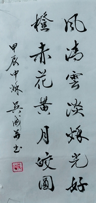 花繁好,月常明,夜甜眠。普天同賀,強國之夢慶成圓。試看兵雄志壯,是處民安物盛,百廢復興全。一曲團圓樂,把酒共嬋娟。