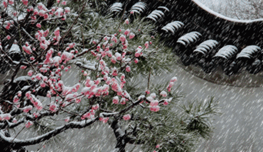 北風昨夜訪金陵 遍撒銀花與水晶 松竹輕歌齊曼舞 紅梅招手笑相迎