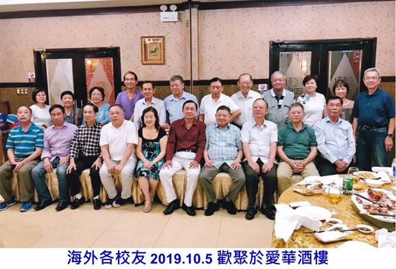 香港:周太太等與校友會同仁歡聚於愛華酒樓。(如有錯漏盼諒)
