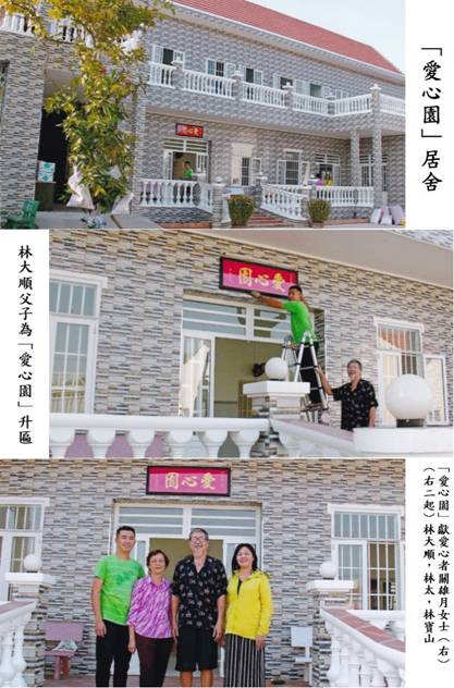 位於隆安省芹玉縣美祿廟岸區的「愛心園」,由第八郡二天堂橋直走廿五公里,車程一小時就到達,「愛心園」由草堂禪寺住持日修師所撰題,林大順書法題字,他們都義不容辭為此獻一分力,「愛心園」已於二月廿二日升匾。