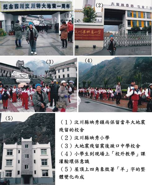 沿途經過大禹故里、草坡鄉、都江隧道等,從車內向外眺望我看到遠遠的山坡石上鑿刻著「映秀鎮」三個大紅字,映秀鎮在望了;一種激動、恐懼、淒酸夾雜的無名感慨在我意識中起伏不定!此時車子停了,我們一行走進莞香廣場,若不知情,只觀眼前景象,寬闊的廣場,建築新穎的樓房,遠處的山脈飄著薄薄的白雲,高聳的山巔仍積雪未溶,環境何其怡人,誰知!天災曾對此處肆虐!吞噬了幾許生命!摧毀了幾許美好家園!當年中國汶川大地震,映秀鎮受災最嚴重,當時電視播出的情景仍歷歷在目,今天,有機會踏上當日山崩地裂,哀嚎遍野慘不忍睹的映秀鎮,僅僅三年時間,當日廢墟一片,今日景象一新