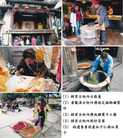 ,除了售賣土特產之外,亦有傳統的賣藝攤位,例如用糖漿描掃出各式各樣的動物描像,還有即場表演炒茶工藝,紫袍石雕刻等民間手工藝,在古裝電視劇中看到的,這裡也不缺