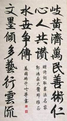 附註:楊開吟,1934年生,原廣東湛江市人。書法家、企業家。書法諸體均佳,曾多次入展全國書法作品展,辭條、作品收入《廣東•當代書法家大辭典》、《當代書法家大辭典》、《海峽兩岸書畫名人大辭典》等。