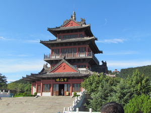 圖片205:劉公島上的望海樓 過客兄信以為真,往上走去;我見老溫伉儷在下邊拍照,那精緻而有風車的荷蘭式房屋挺美,就此下去獵景。不一會夠鐘,有車來了,四人一同擠上車,反正過客來時並沒跟我們同車,遂不以為意。 回到面海景點區,我們還參觀望海樓、北洋海軍忠魂碑、軍機總部等等…。 差不多天黑了,在碼頭集中過海要回到威海市,導遊一點人數,還欠一個就是過客,這才想起此君還在後山,於是導遊電話聯繫有關方面:一位越南旅客在後山迷路,請旅遊區協助解救。還好,大概15分鐘後,一輛遊覽車把過客兄送到碼頭,我見他臉上雖然強作笑容,卻已面如土色。 這個晚上,我們回到威海被安排進住山上的綠島賓館,該賓館真豈有此理,不供應肥皂、牙膏等物還美其名為環保起見。詩人們跟他理論一律無效,被迫購買他的肥皂、牙膏,幸好老伴有先見之明,把這些必需品從越南帶來方知有備無患的好處。。