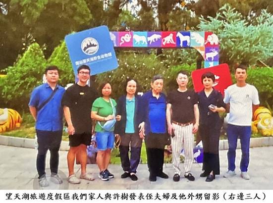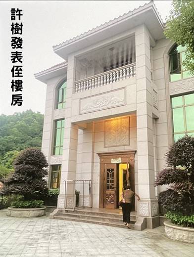 大表哥兩耀的陵墓則在這個山頂,墓坐北朝南,背後是蓊鬱林木,前面乃如鏡魚塘。 許樹發表侄為我們介紹整座大房子修建過程與它室內擺設:樓下大客廳佈置優雅寬闊,空調設備完整。左邊牆上裝配一台大型彩視、右邊一套乳白皮套沙發茶几、天花板懸下一組水晶吊燈、落地大窗、鵝黃色窗,大玻璃廚櫃一排高級色酒、高跟杯、一個酒吧櫃臺。樓上是家庭臥室及專為來訪親友提供留宿的房間,一個往外伸展的橢圓形陽台,站在陽台上可以眺望遠山近水景色和呼吸拂面清新空氣。樹發介紹了大樓房那位六十多歲的管理,原來管理人便是他岳父大人。樹發告訴我:幾年前新冠病毒疫情嚴重蔓延到時他們全家大小全搬到山上大房子住下,直到疫情消退之後才回到山下住宅。 今晚整座大房子燈光輝煌熱鬧,除大表嫂,還有她大女兒一家、樹發夫婦一家、幾個大表嫂的誼子也是樹發拜把兄弟到場。大圓桌擺在露天地方,晚風微送,空氣涼爽。 這局飯極為豐富,菜單是自訂,包括外買的烤雞烤鴨、烤豬、海產,更有多盤是樹發親手下廚燒的菜餚。大家邊吃邊聊,挺興高彩烈。樹發他們酒量驚人,一局飯下來喝乾了幾瓶高級烈酒!