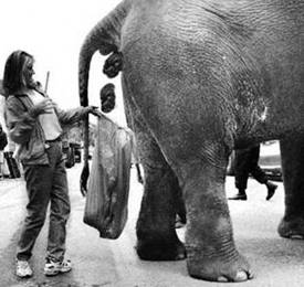貍香咖啡有殊香,那是咖啡經過香貍消化酶作用的結果。可是香貍個頭小,排出糞便有限。於是泰國人異想天開,要把大象這個龐然大物變成生產貍香咖啡的機器(下圖)。不過我相信一定泰國人在搞笑:大象是草食動物,有強大的臼齒,咖啡籽會被磨得粉碎,難道和糞便一起沖?