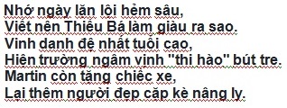 我前年患腦卒中失語症,發音困難,但組委會指定發表得獎感言,無可推卻。我簡單發言後,一字一頓地朗誦事先準備好、越南人喜見樂聞的「六八體」詩:
