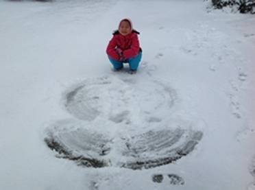 小甥女和她躺在雪地上