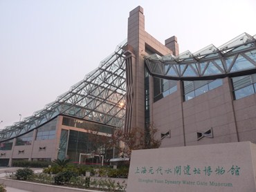 誤入秦陵會始皇 吳淞江史見滄桑 木樁個個賽兵俑 鐵榫深深銜石方 水過閥關梳若髪 門遺閘柱直如檣 工程科學多觀感 更念先賢建故鄉 上海元代水閘遺址博物館位於延長西路志丹路路口,是迄今為止全國最大的元代水利工程遺址,佔地總面積約1500平方米。遺址發現於2001年5月,被評選為“2006年度中國十大考古發現”。博物館佔地2300多平方米。根據水閘現場發掘出來的石板、木頭、元代文字——八思巴文等遺物及文獻記載,證實水閘為元代古遺址,距今700多年。水閘是在宋代水閘營造的基礎上,在長江三角洲這一特殊地貌情況下建造的,因此在中國水利工程發展史上有著極其重要的地位。同時,它又是長江口海岸水利工程的重要標誌,從閘門到駁岸、外牆、固水的石面構造、用材,都可堪稱是此類水利工程的先驅。