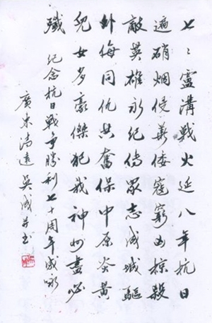1945年8月15日是侵華日投降之日,因書成一律以紀抗日戰爭勝利70週年暨世界反法西斯戰爭勝利70週年。