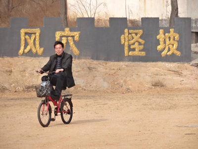廣告有廣而告之的作用,其效用往往會往大處說,故被人們不齒。而慕名風穴寺,意外不僅收獲了唐朝詩人劉希夷的“夷園”,還順便捎帶檢驗一下“風穴怪坡”這一神秘的面紗。我們來到“風穴怪坡”售票處,與管理人員協商,滿心歡喜的取得了3個人20元的優惠“探秘”權,我們3人從景區管理處推了一輛自行車到“怪坡”,實驗場,但到“風穴怪坡”一看,卻“怪坡”不見坡,原有的山坡幾乎被挖掘機、推土機夷為平地。“怪坡”呈東西走向(如果我沒迷向的話),我朝向西的“上坡”騎,說也奇怪,確實是“上如乘風迎帆”,不用蹬,順溜得很,若往東“下坡”騎,卻不用力蹬就停。確實是“下如逆水行舟”,但同樣是哪片丘陵地帶,你換個地方就不靈驗了。騎車完畢,我們正要返回,發現有輛小車也前來湊熱鬧,只見那輛小車在怪坡摘擋熄火上坡時依然能行,下坡摘擋熄火就會緩慢後退,看來“怪坡”動力十足,名不虛傳。