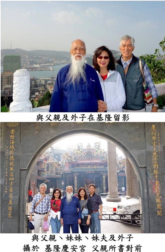 當時是日據時代大正十五年,同年不久昭和即位,所以父親也可說生於昭和元年(昭和元年只有九天)。父親畢業於北商一(台北商專前身)。台灣光復後,從曹秋圃先生學習書法,隨羅鶴泉先生研修文史,向周植夫先生求教唐宋元明詩,並拜師鄭曼青先生苦練鄭子太極拳。著述有《萃庵書話》丶《初學書道入門》丶《書法之美