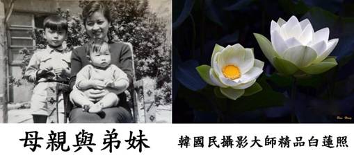 非常感激韓國民攝影大師知我獨愛白蓮,特以兩大幅他的白蓮攝影精品佳構相贈,高掛家中牆上,睹照思人,母親我愛您!