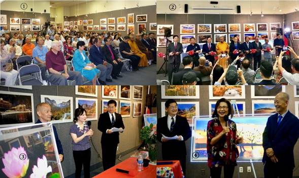 開幕式於27日上午11時半隆重登場,由洛杉磯AM1300電台名主持人范守文先生主持,蒞臨祝賀者包括不少高僧、政要、文人、雅士等各界貴賓,慕名而來的「韓粉」們更是擠爆了洛僑中心的展覽室。除了欣賞琳瑯滿目、美不勝收的韓大師的精彩創作外,並有專題演講、歌唱朗誦、新書義賣及中、越