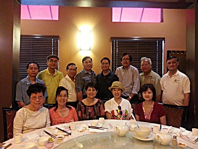 風笛詩社南北加州詩友二零一四年七月五日亞市紅館雅聚 後左起:柯文雄、畢日陞、馬玉强、王倫德