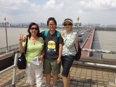 梁柳英(中)和黃家雄、梁少鈊伉儷合攝