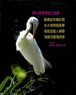 鶴壽延年耀彩霞 多才博學挹風華 德高望重人稱譽