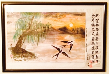 睹物思人夜色臨 悵然禱告月深沉 耄年教導傳真理 耆老蒙恩報福音 彩筆千言多麗句 玉壼一片有冰心 餘情且付常青組 歲月留痕寄語吟 補註: 洪鴻江老先生虔誠基督徒,屬橙縣華人浸信會創立中文學校擔任校長。兼年長組老師。博學多才,擅長琴棋書畫,餽贈我多幀佳作。曾於75歲那年依我所題句,志遠執筆書法,而他完成了的畫作。懸掛客廳歷時26載。他一生忠心愛主,雖已年越期頤行動不便下,仍然到來教會崇拜,毎月都由女兒和女婿陪同,和我們一起參加(常青團契)聚會。至今達101歲返回天家,安息主懷。