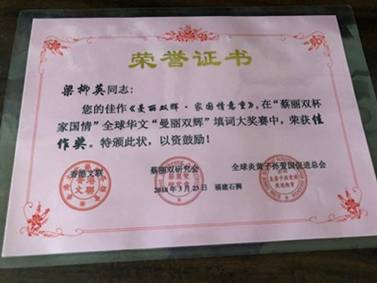欣慶入圍蒙獎勵 騷章雅句獲殊榮