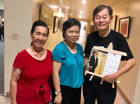 左 梁柳英(風笛詩社公關兼南加作協理事)、凌曾佩珍蒞臨現場新會友聯同瘳茂俊(南加作協會長)合照。
