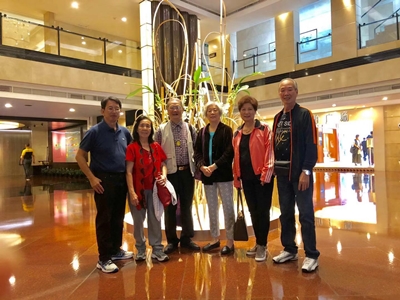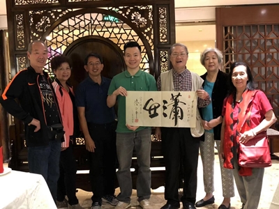 白雲賓館值深秋 倒筆大師邀聚頭 萬里關山能見面 一襟塵土暫淹留 管他鬢髪今催我 喜樂聯歡共唱酬 此夕天涯欣作客 歲華虛度竟添愁 照片說明: 1. 左:梁漢棋、梁柳英、陸正平大師伉儷、張偉光誼兄嫂2018/11/8合攝於廣州白雲賓館。 2. (右)梁柳英(風笛公關)等人和倒筆大師陸正平笛兄伉儷2018/11/8合照於廣州。 3. 左:梁漢棋、梁柳英、徐少珍、張偉光、張之堯2018/11/9合攝于廣州荔灣泮溪酒樓。