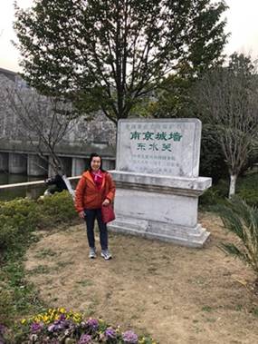 南京古都貌堂皇 內畫玉彫藝術坊 建築城牆圖大業 工程宏偉受稱揚 明朝帝國留青史 遺跡世人共表彰 踏步登高凝眺望 怡情養性此時償