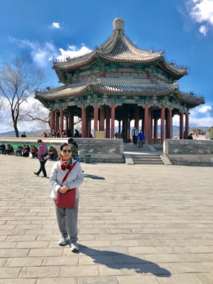 皇家園林又重逢 世界長廊踏步中 故國縈懷徒夢蝶 異鄉寄跡嘆飄蓬 白雲蒼狗人間事 綠水青山詩意融 建築精工呈巧合 銅牛湖畔挹荷風