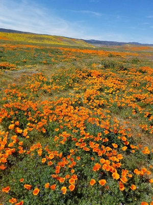漫山遍野百花香 嫩蕊含苞吐艷芳 日麗風和堪賞覽 如茵綠草耀斜陽 補註: 圖片是罌粟花。落草為冠,屬加州歷年來最上鏡的野花之一。生長在山坡谷地,正值盛放期間與群花爭風鬥艷。