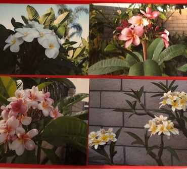 居家門前和後院,種植的雞蛋花開放艷麗繽紛。賞心悅目感懷下而誌詩。