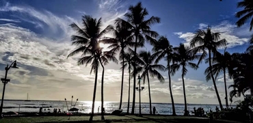 招展椰林伴夕陽